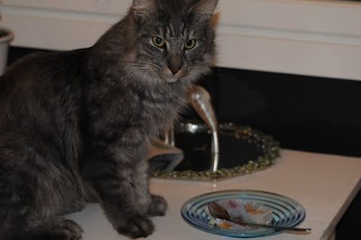 I've seen cats going crazy for spaghetti with bottarga, but this' the first cat I've seen one eating spaghetti al pesto (by the way: is the "a" at the end of the word theFinnish way of making the plural?)