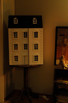 Eilen illalla tuli kaupunkikotiinkin rutkasti ohjelmaa litteän paketin muodossa. Kävin päivällä Vanhan ylioppilastalon nukke- ja nallemarkkinoilla Helsingissä. Sieltä tarttui mukaan kauan miettimäni nukkekoti. Vihdoin pääsevät yli kymmenen vuoden ajan keräämäni minitilpehöörit kirjahyllyistä ja laatikoista omaan kotiin.