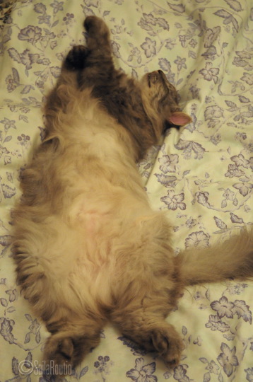 Voi noita karvakasoja. Juusokin makaa parhaillaan keinun alla varjossa pitkääkin pidempänä. Näyttää, ettei se edes jaksa hengittää, mutta kyllä siellä henki pihisee.