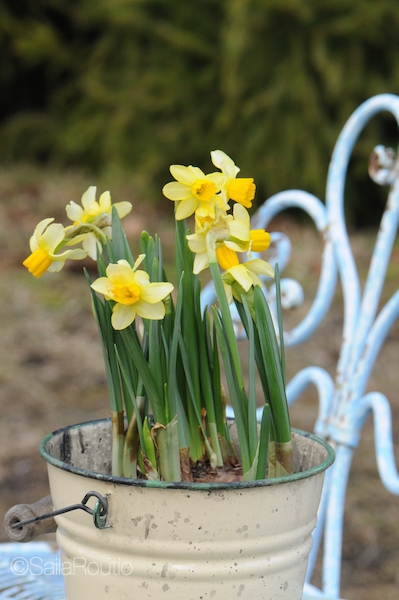 Vaikka välillä tulisi pieni lisä valkoista taivaalta, niin onhan kevät ilmiselvästi siellä valtavan paljon pidemmällä kuin täällä. Ihana katsoa kuvia maasta nousevista pienistä sipulikukista. Meille tuli eilen yli 10 uutta lunta, mutta toivon sen sulattavan alla olevaa koppuraista lumijäätä. Haluaisin jo tarttua haravan varteen ja tuntea keväisen maan tuoksun.