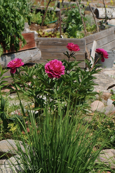 Voi kökkäre. Tämä on varmasti monen mielestä ihana, mutta minulle tässä yhdistyy kaksi asiaa, joista en pionissa välitä: voimakas kerrannaisuus ja aniliininpunainen väri. Syksyn tullen tuo siirtyy jonnekin tontin reunalle, niissä on kyllä tilaa. Tämä on pikemminkin joku 'Karl Rosenfield'; ja siinäpä lajike, joka ei ole lainkaan mieleeni.