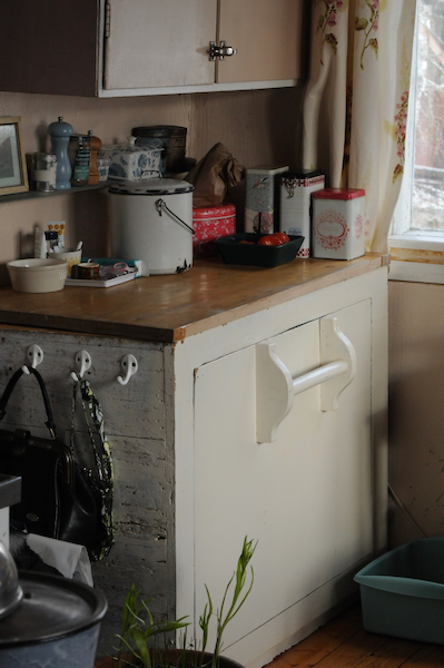 Sain pari vuotta sitten halkolaatikon, kun ruinasin; tässä samassa kylässä olevasta vanhasta talosta, kun siellä uudistettiin keittiö. Minusta tuo on tosi hieno.