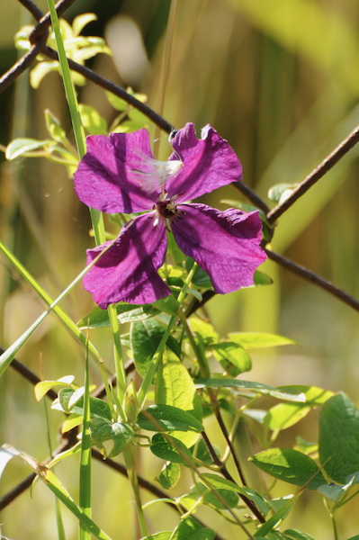 Aidalla kukkii edelleen 'Polish Spirit' -tarhaviinikärhö.